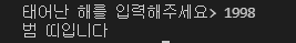 141줄) 입력 받은 해를 birth_year라는 변수에 저장하는데, 이때 int(str_input)으로 문자열을 정수형으로 변환한다.