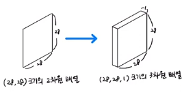 흑백 이미지일 경우 깊이 차원이 1인 3차원 배열로 변환한다.