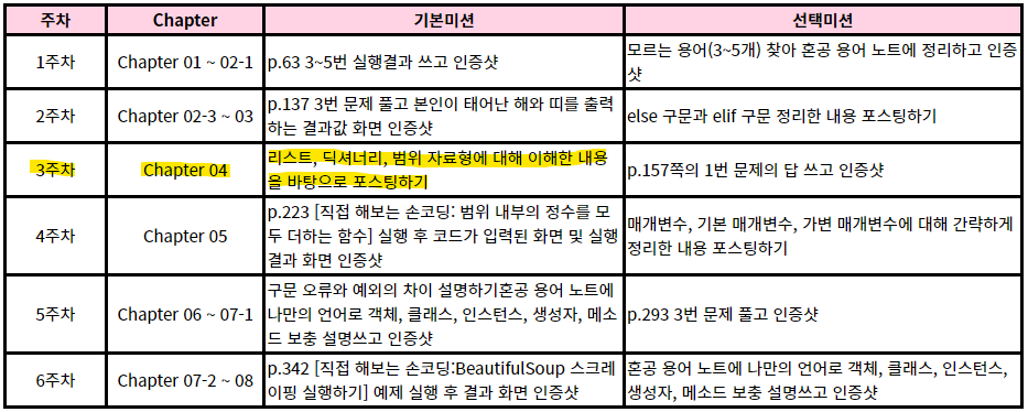 | [혼공챌린지] 1주차 혼공파 파이썬 선택미션 (0) | 2021.07.05 |