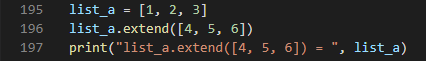 extend( )함수를 써서 동시에 4, 5, 6 요소 3개가 list_a에 추가되었다.