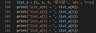 188줄) len( )은 요소의 개수를 세어준다. list_a의 요소는 1, 2, 3으로 총 3개가 있으니 결과로 3이 출력되는 것이다.
