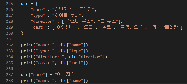 요소에 접근하는 방법은 dic["키 값"] 으로 하면 된다