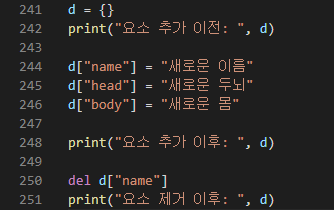 딕셔너리에 요소 추가하기 / 요소 제거하기