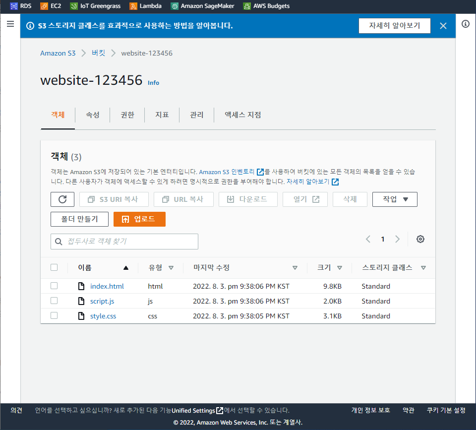 그러면 이런식으로 업로드가 되어서 버킷 내에 객체가 추가되었다!!