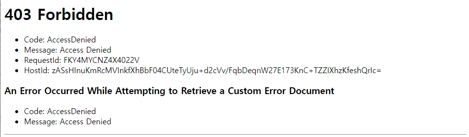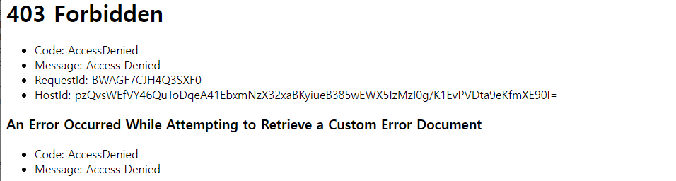403 Forbidden이 나온다 왜냐면 아직 파일을 뭘 업로드를 안했으니까