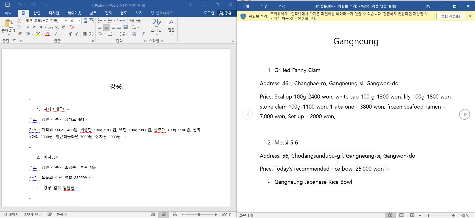 파일은 내가 강릉 맛집을 찾은 것이다..ㅎㅎ