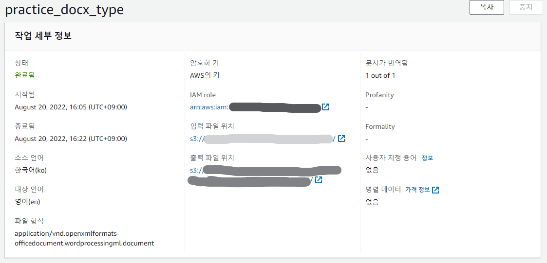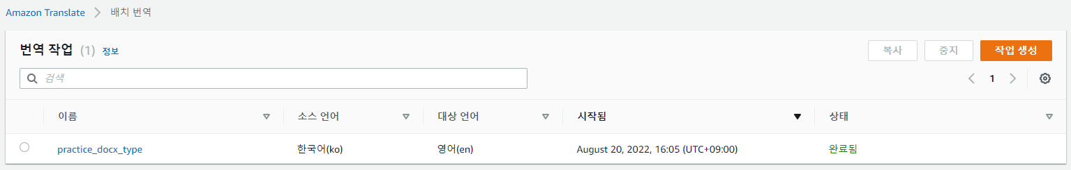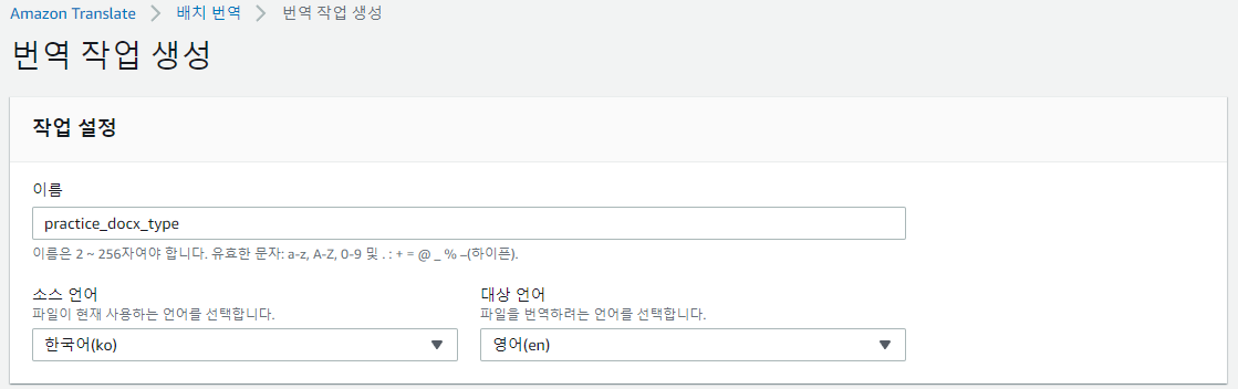 2. AWS Translate에서 배치번역 생성