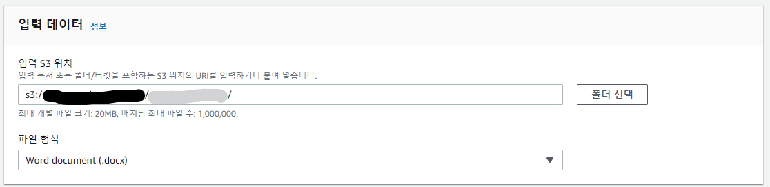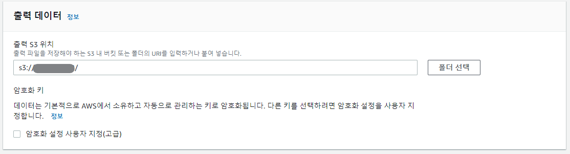 입력 S3 위치를 설정해준다