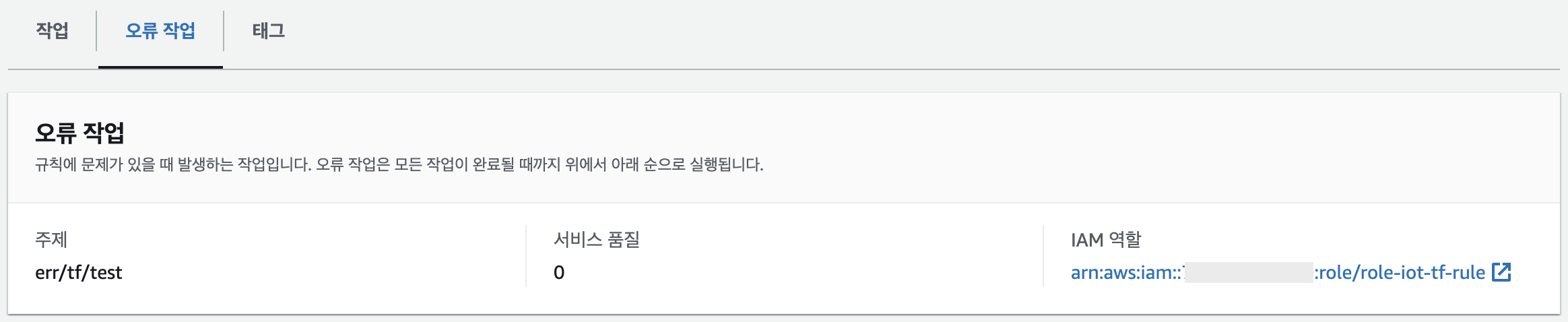 - 오류 작업을 위해서 data로 정의한 IoT Thing(사물)의 정보를 가지고와서 err/tf/test에 데이터를 publish 할 수 있도록 한다