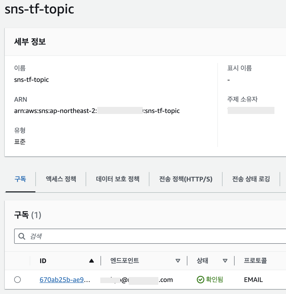 구독이 확인될 때까지 AWS는 Terraform이 구독을 삭제/구독 취소하는 것을 허용하지 않는다.