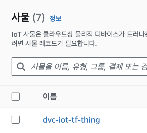 이름이 dvc-iot-tf-thing이라는 사물을 생성한다.