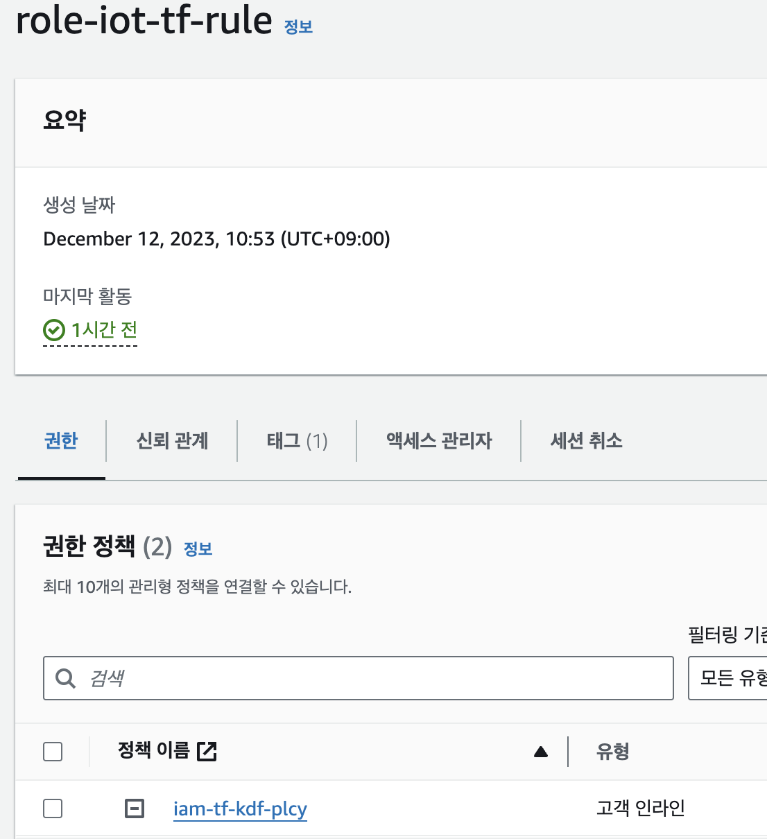 - IoT Core Rule에 적용할 IAM Role을 구성한다.