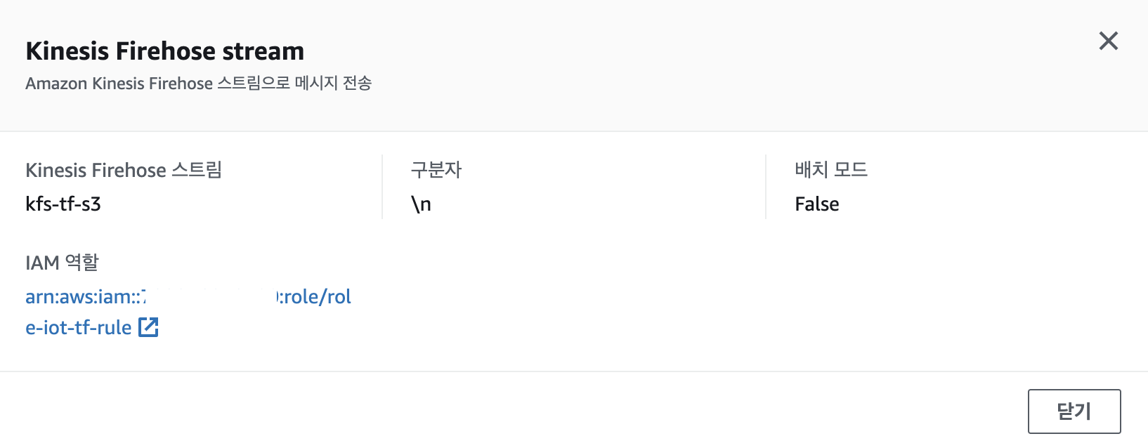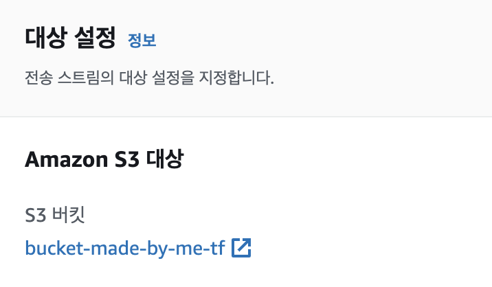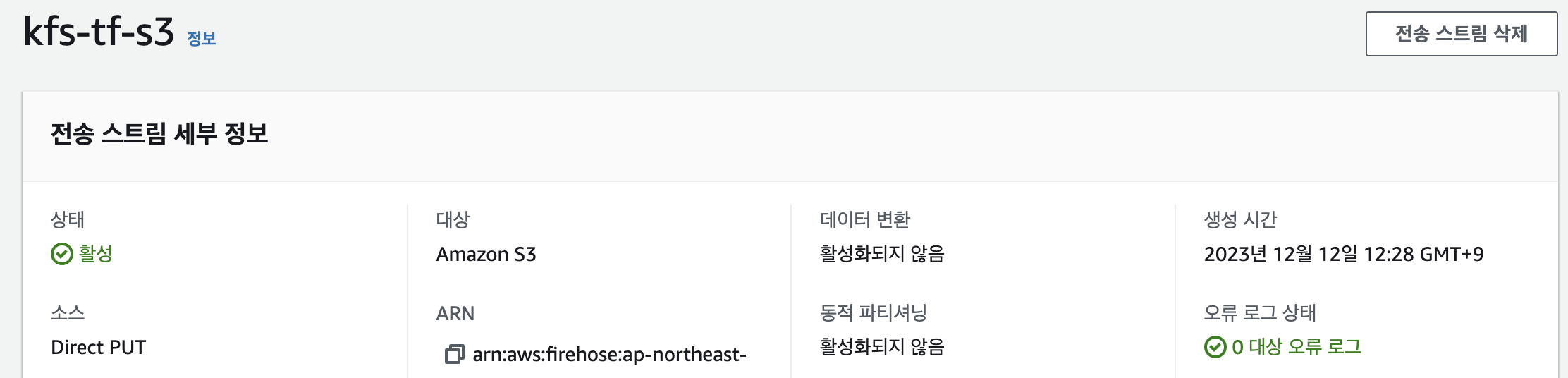 delivery_stream_name = "kfs-tf-s3" #Kinesis Firehose Stream 이름