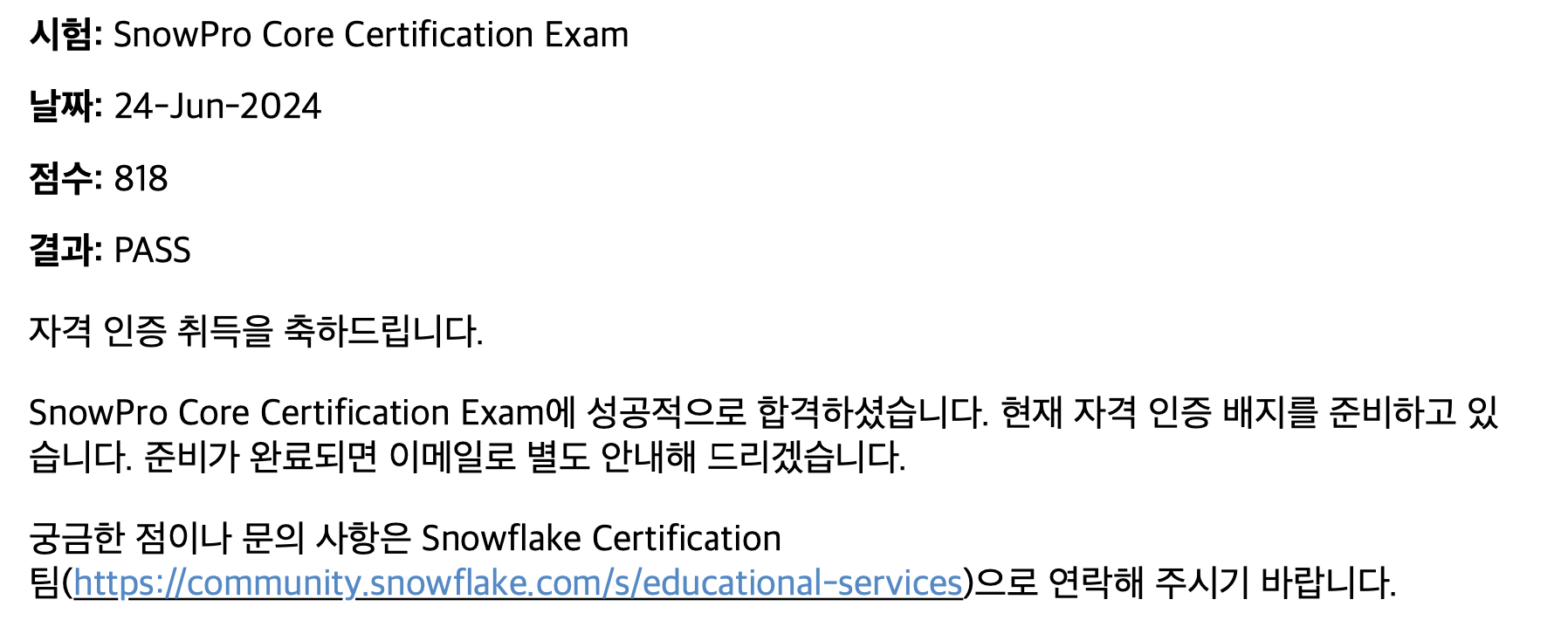 오늘은 Snowflake SnowPro Core 자격증을 취득한 후기를 작성해보겠다.