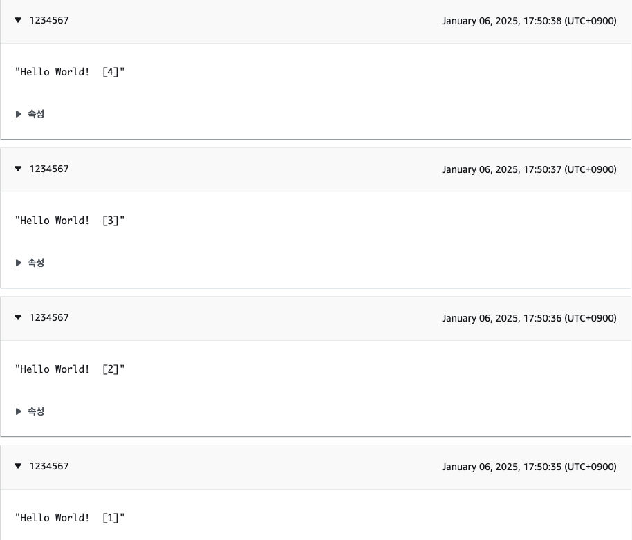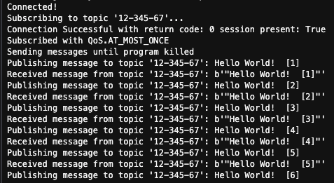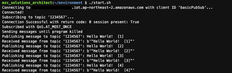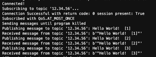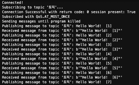 - AWS IoT MQTT Client 콘솔에서도 메시지가 정상적으로 도착하는 것을 확인할 수 있다.