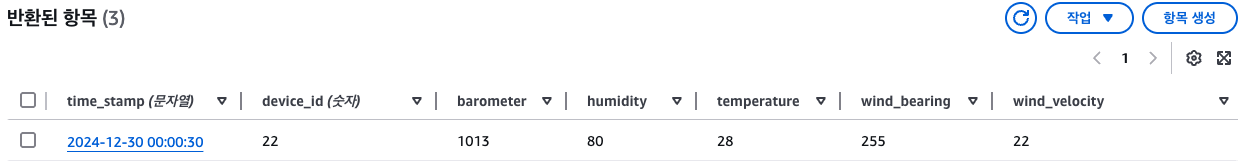 4. DynamoDB에서 테이블에 데이터가 잘 들어갔는지 확인한다.