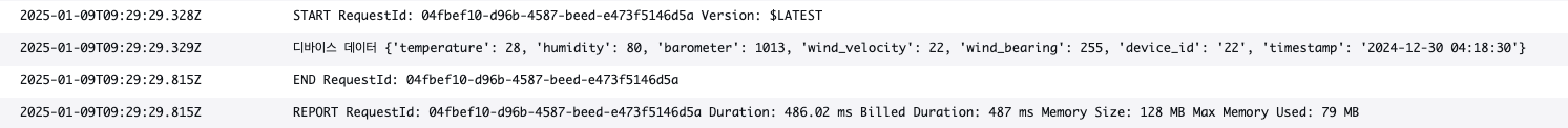 3. Lambda의 Cloudwatch log group을 확인하면 다음과 같이 나타나는 것을 볼 수 있다.