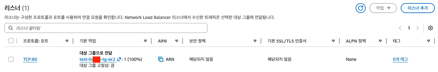 - 리스너는 80 포트로 ec2 대상그룹으로 전달하기