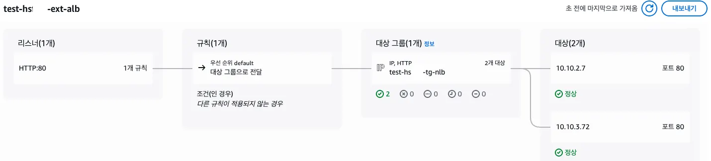 - 교차 영역 로드 밸런싱은 꼭 켜둬야한다. 그래야 추후 ALB의 타겟그룹에서 NLB의 엔드포인트 서비스가 지정되었을 때 상태 검사 fail이 안 뜬다