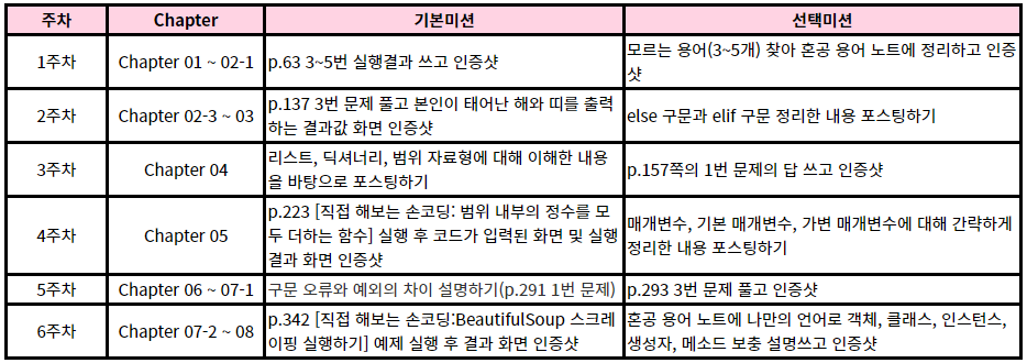 혼공학습단 6기에 참여하게 되어 6주 동안 <혼자 공부하는 파이썬>을 공부했다!