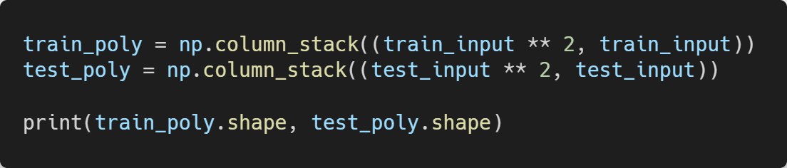 column_stack()함수를 사용해 train_input을 제곱한 것과 train_input 두 배열을 나란히 붙힌다.