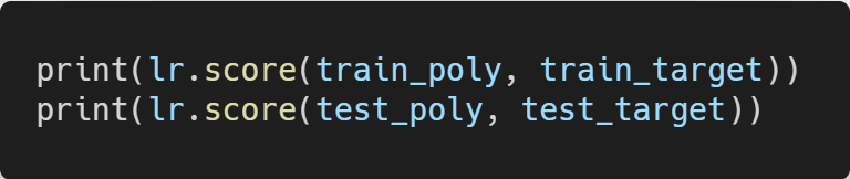 훈련세트와 테스트세트의 결정계수 점수를 출력해보면