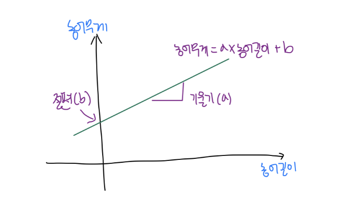 하나의 직선을 그리기 위해서 기울기와 절편이 필요하다