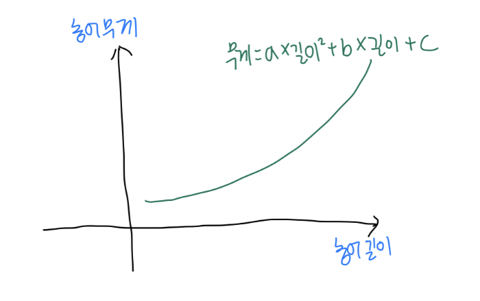 무게 = 1.01 * 길이^2 - 21.6 * 길이 + 116.05