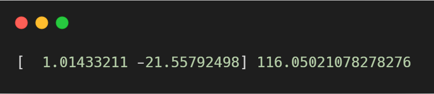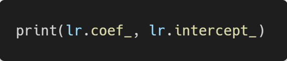 LinearRegression 클래스가 찾은 a(기울기)와 b(절편)는 lr객체의 coef_와 intercept_ 속성에 저장되어 있다.