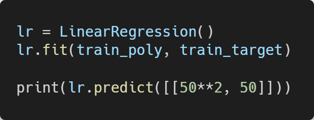 훈련세트와 테스트세트에 대한 점수가 크게 높아졌지만 여전히 테스트세트의 점수가 훈련세트보다 더 높은 것으로 보아 과소적합이 남아있음을 확인할 수 있다.
