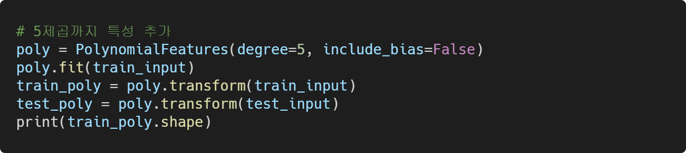 앞서 만든 train_poly를 사용해 모델을 훈련시켜보니