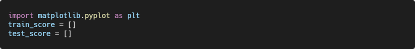 맷플롯립을 임포트하고 alpha 값을 바꿀 때마다 score() 메서드의 결과를 저장할 리스트를 만든다.