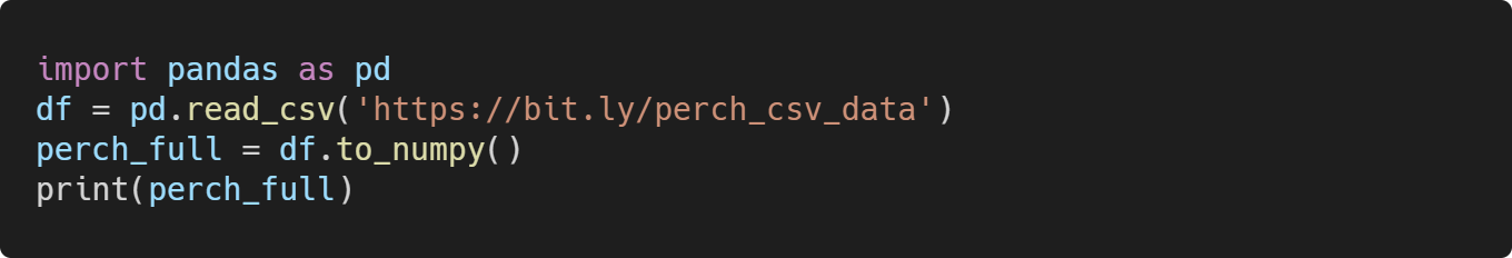 데이터프레임을 만든 다음 to_numpy() 메서드를 사용해 넘파이 배열로 바꾼다.
