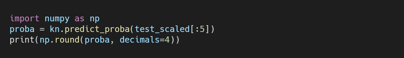 출력 결과를 앞서 구한 proba 배열과 비교해 보면 정확히 일치하는 것을 알 수 있다