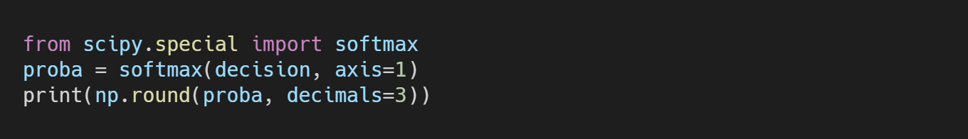 사이파이가 제공하는 소프트맥스 함수는 scipy.special 아래에 softmax() 함수를 임포트해 사용한다.