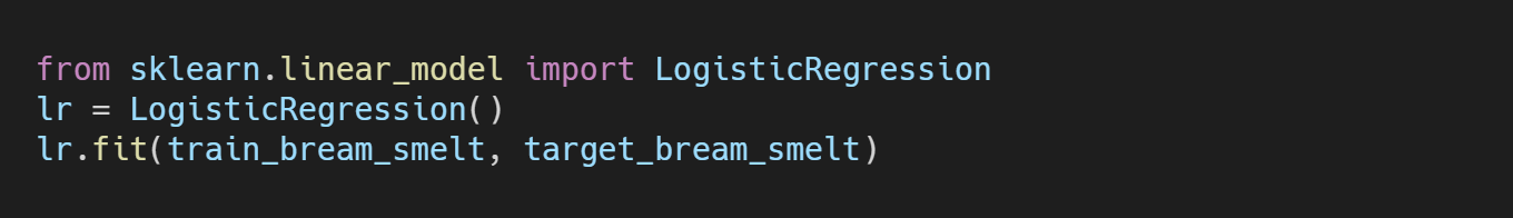 bream_smelt_indexes 배열은 도미와 빙어일 경우 True이고 그 외는 모두 False이다. 이 배열을 사용해 train_scaled와 train_target 배열에 불리언 인덱싱을 적용해 도미와 빙어 데이터만 골라냈다.