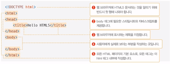 - 태그 : 요소를 만들 때 사용하는 작성 방법