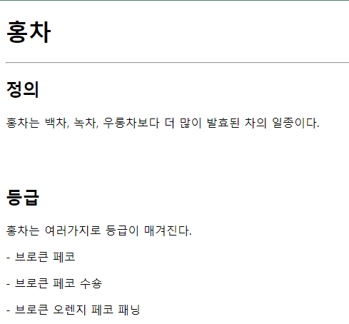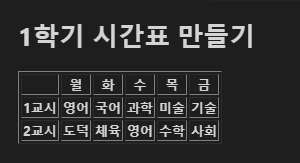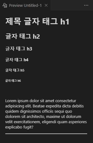 | 제목 글자 | h1 | 첫 번째로 큰 제목 글자 생성 |