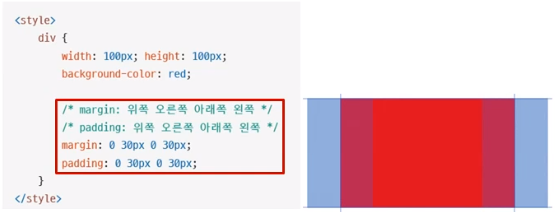 * margin 속성과 padding 속성은 두 가지 방법으로 상하좌우를 각각 지정할 수 있음