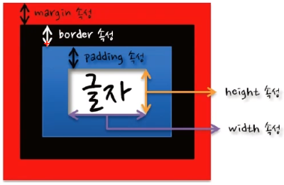 | margin 속성 | 테두리와 다른 태그 사이의 테두리 바깥쪽 여백 |