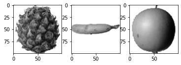 apple, pineapple, banana의 배열 크기는 (100, 10000)이다