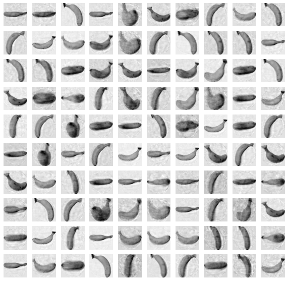 fruits_reconstruct = fruits_inverse.reshape(-1, 100, 100)