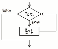 if조건문과 형식이 비슷하지만, 불(bool) 표현식이 참이면 중괄호 안 문장을 계속 실행
