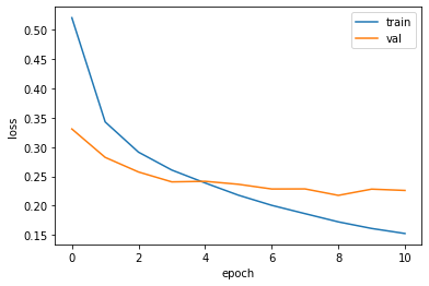 plt.legend(['train', 'val'])