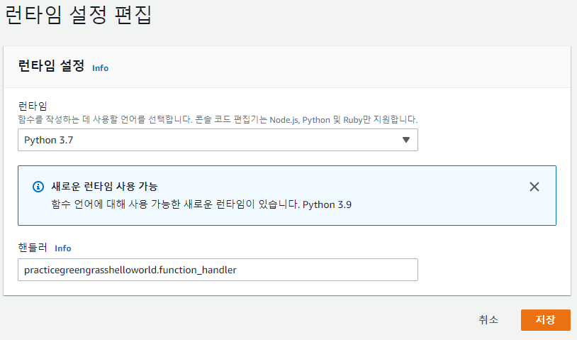 아래로 스크롤 해서 런타임 설정에서 편집(edit)을 눌러준다