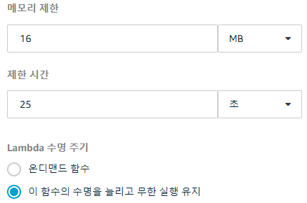 제한 시간과 수명 주기를 위와 같이 바꿔준다