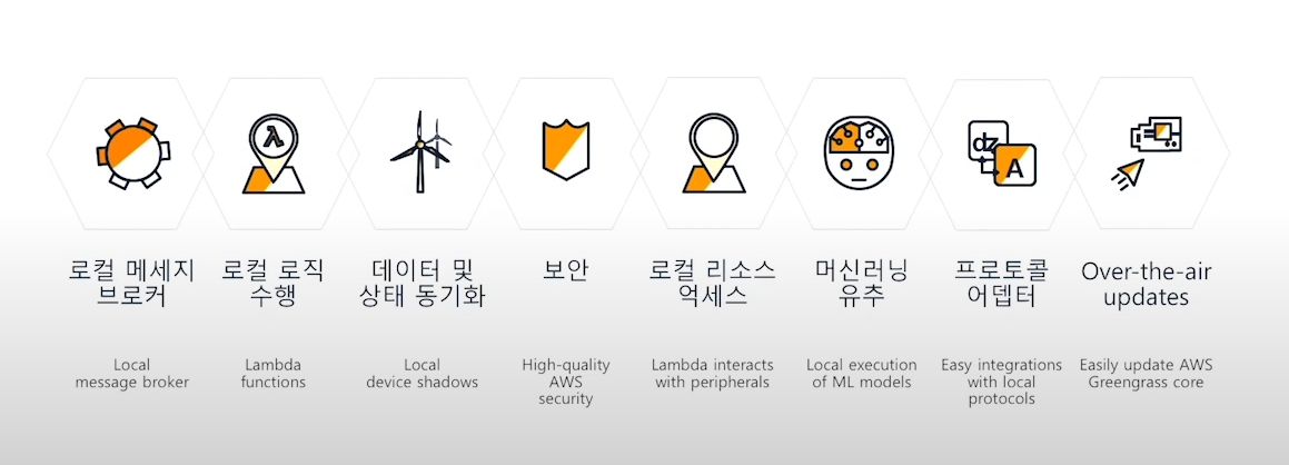 AWS Greengrass : IoT를 디바이스까지 확장하고 생성된 데이터를 로컬에서 처리할 수 있다.
