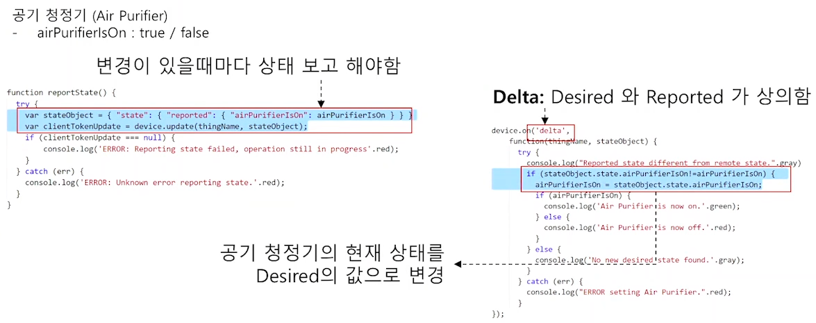 클라이언트 사이드에서 delta가 발생했을 때 그 delta를 트랩해서 thing의 상태를 변경해주는 것 -> IoT사이드가 아닌 thing 사이드로 개발해야한다.