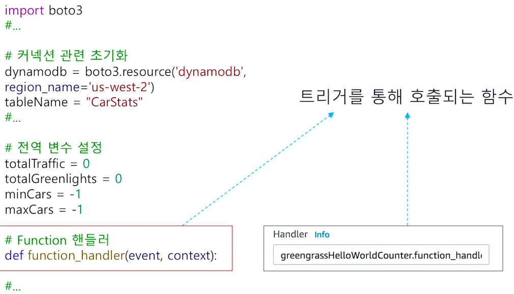 람다가 실행이 되면 트리거가 돼서 실행되는 구간 자체는 핸들러 구간이다