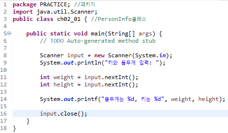 7. 몸무게(정수)와 키(실수)를 입력 받아 변수에 저장 후 출력